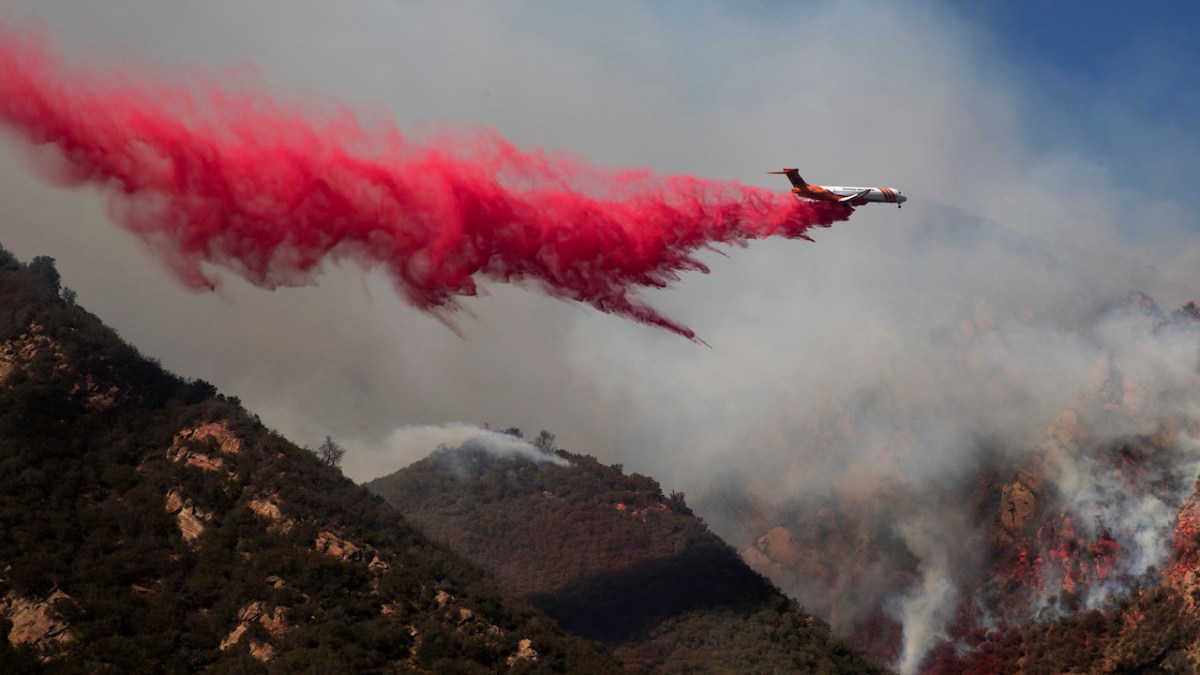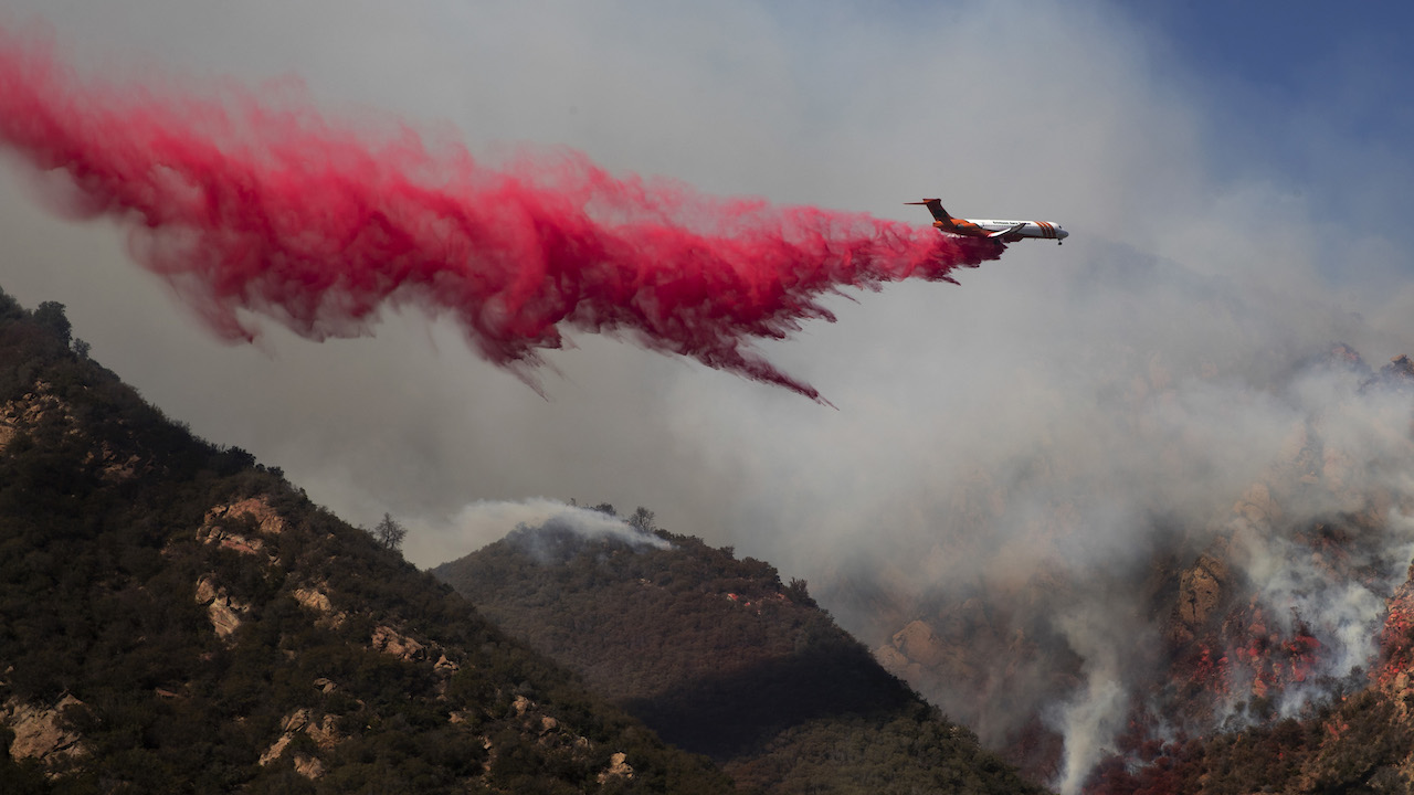 California Wildfires Published November 13, 2018 at 1280 × 720 in Questions And Comfort – By Marc Next → A plane drops fire retardant on a burning hillside Sunday, Nov. 11, 2018, in Malibu, Calif. (AP Photo/Jae C. Hong)